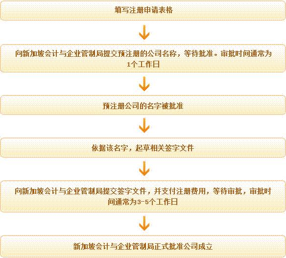 新加坡會計與企業管制局審核預註冊公司的申請的法定時間為14個工作日,但通常3至5個工作日就可以批準。